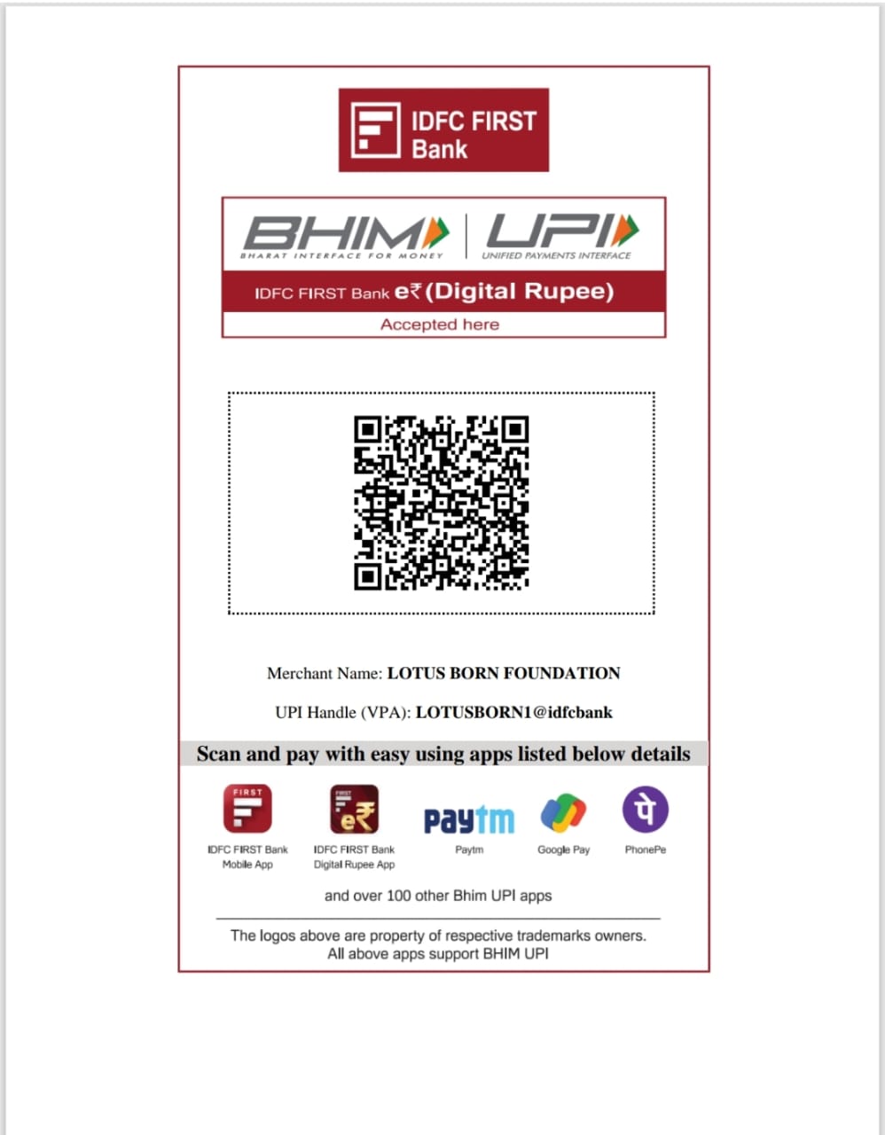 | Beneficiary: | LOTUS BORN FOUNDATION |